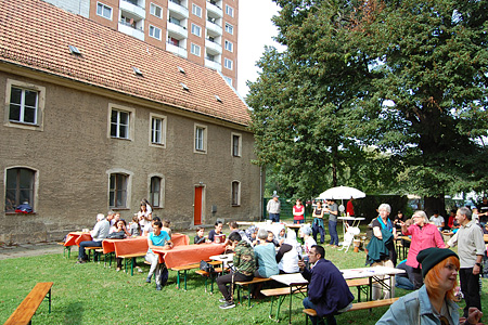 Das Netzwerk „Prohlis ist bunt“ hatte zum interkulturellen Bürgerfest geladen, welches als Programmpunkt der Interkulturellen Tage der Stadt Dresden in Prohlis für einen offeneren und menschlicheren Umgang miteinander stand. Bei Kaiserwetter kamen etwa 120 BürgerInnen und in Prohlis lebende Menschen mit Migrationshintergrund, um gemeinsam zu feiern, zu essen, kreativ zu sein – kurz: um miteinander in Kontakt zu kommen.